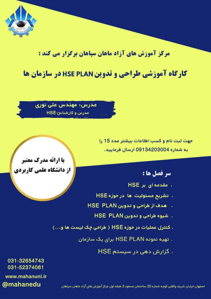 کارگاه آموزشی طراحی و تدوین HSE PLAN در سازمان ها
